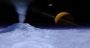 WASHINGTON -- Astronomers looking at the spectacular supersonic plumes of gas and dust shooting off one of Saturn's moons say there are strong hints of liquid water, a key building block of life.