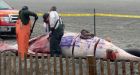 Dead whale washes ashore in N.J., gets tagged with graffiti